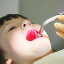 薄いゴム製のシートで口元を全体的に覆い、治療する歯だけが表に見えるようにして治療を行います。治療する歯以外の部分が覆われていますので、不意にお子さまが動いても、誤って舌や歯ぐきなどを傷つけてしまうことがありません。また、お子さまが小さな器具を誤って飲み込むことも防ぎ、より安全性の高い治療が可能になります。