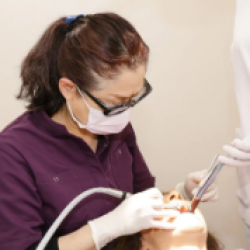 まず、「う蝕検知液」というお薬で虫歯に侵された部分だけに色をつけて識別します。虫歯に侵された部分を明確化することで、必要最低限の部分のみを削るようにしています。また削り過ぎ防止のために、MI治療用の極細のバー(歯を削る器具)を使用して、少しずつ丁寧に虫歯を除去。長年にわたる歯科医師の経験で、虫歯の部分を的確に判断し、歯の健康な部分を削ってしまわないよう細心の注意を払っています。 患者さまの天然の歯を長持ちさせるため工夫を重ね、できるだけ削らない治療への取り組みを行っています。