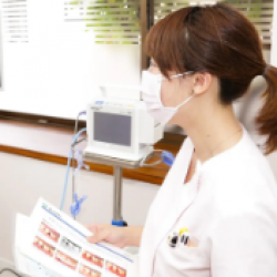 手術中は、患者さまの全身の状態を管理する必要があります。心拍数や体温、血圧、酸素飽和度、心電図を常に測定・記録できる生体モニタを導入し、手術中の患者さまの健康状態をしっかりとモニタリング。万が一、何か異変が起こった場合も、迅速に対処ができます。
