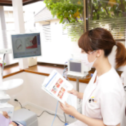 安心して治療を受けていただきたいと考えている当院では、患者さまへの丁寧なご説明を心がけています。 現在のお口の状況についての説明は、レントゲン写真・口腔内カメラの画像・図やイラストなどを用い、どなたにも解りやすいよう配慮しながら説明を行っています。 具体的な治療法については、メリット・デメリット、費用、治療にかかる期間についてご説明し、相談の上で、患者さまにとってベストな方法を選択します。